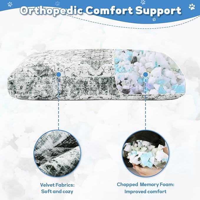 - 【QUALITY MATERIALS】: Our pet mattresses are made with a blend of shredded memory foam padding that provides support for comfort. The soft surface fabric makes your pet feel cozy and comfortable, ensuring that your furry friend is surrounded by love and warmth for a comfortable resting place!
