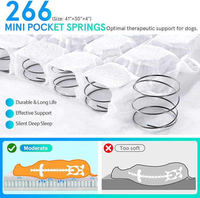- 【10 Years No Collapse,Long-lasting Support】Unlike traditional foam beds that flatten over time, our spring dog bed features resilient springs that maintain their shape and support, ensuring your dog enjoys consistent comfort. Health Benefits: Proper support from our spring bed can help alleviate joint pain and pressure points, promoting overall health and well-being for your dog.