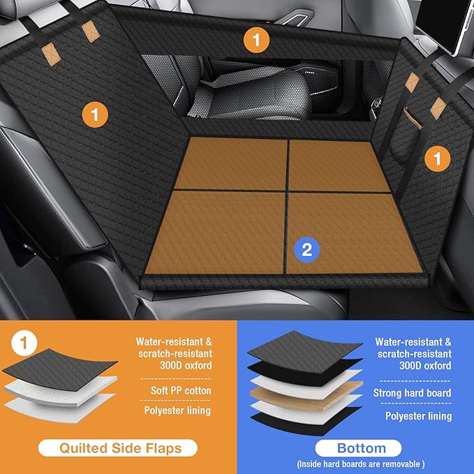 - 【No More Pets Falling】The back seat cover for dog features sturdy bottom board, which is strong enough to support your dog with dog safety seat belt to prevent your pet from sliding during drive.