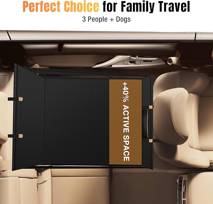 - 【Larger Space & Ease Pet Anxiety】The back seat extender for dogs turns all the space in the back seat into a resting space for dogs. The back seat becomes a car bed to make the dog more comfortable on the road. The mesh viewing window gives your pets a good view and make them ease and have a good mood during travel.