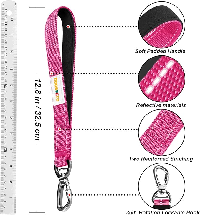 - 360-degree Locking Carabiner: Safety is our top priority, which is why we've equipped our short dog leash and dog seat belt with premium 360-degree locking carabiners. The 360-degree rotatable clasp keeps your dog acting freely without strangling or tangling. Our innovative locking design enhances security for both pets and drivers, minimizing the risk of accidents or escapes