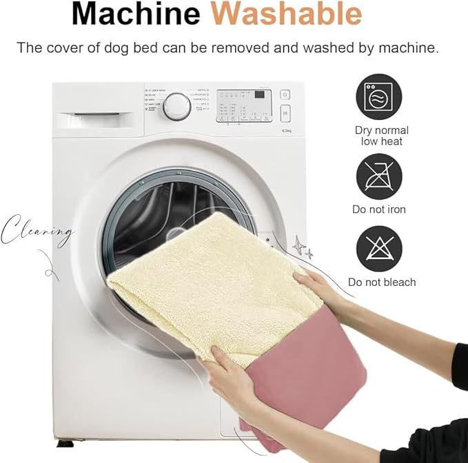 • 【Care Instruction】Our large dog beds boasts a removable bed cover, there are zippers on the top and bottom which make it easier to assemble or disassemble for quick cleaning and easy care; before putting into washing machine, please make sure the foam and bolster fillings are removed, and the zippers are closed