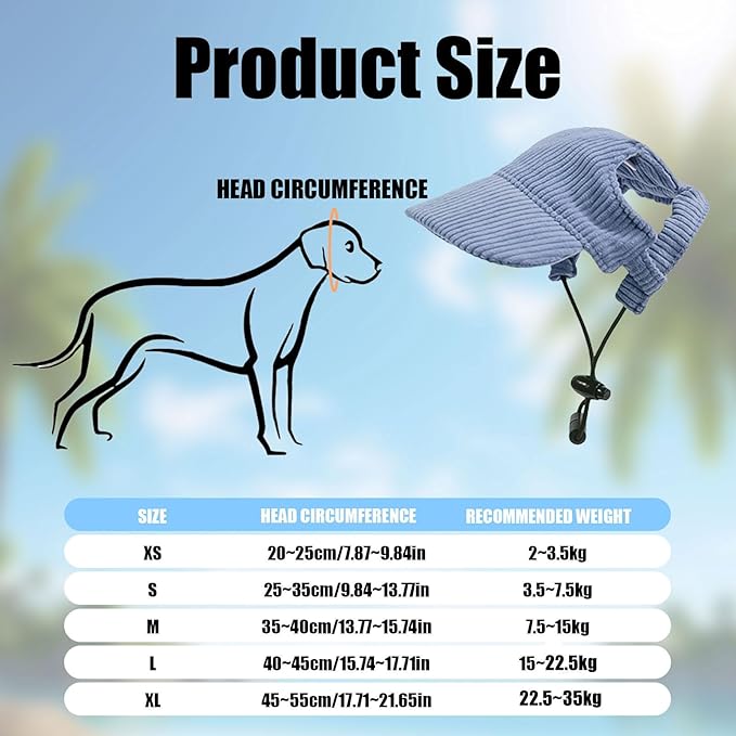 • 【Size】The outdoor hat has 5 sizes(XS/S/M/L/XL) to choose from, suitable for most types of cats and dogs, please choose according to the measured size data. The pet outdoor sports hat is designed with 2 ear holes at the top, which can let your pets show their lovely ears.