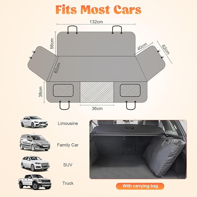 - 【WATERPROOF & STURDY & COMFORTABLE】Dog car seat cover for back seat made of multilayer heavy-duty material. waterproof material,advanced heat-pressing technology, 600D Oxford cloth, Effectively waterproof, anti-scratch, more sturdy and comfortable. Detachable PVC Load-bearing Plate.Bottom non-slip dot rubber, use with adjustable straps to hold the dog seat cover securely in place, easing the dog's anxiety during long car trips