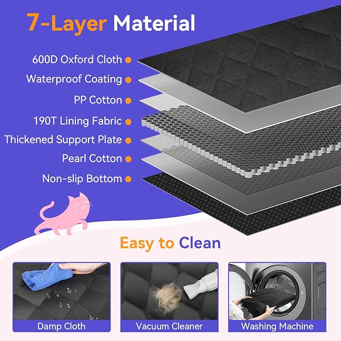 - STURDY MATERIAL AND NON-SLIP : Pawaboo backseat extender for dogs adopts premium material with 7 layers.advanced heat-pressing technology, 600D Oxford cloth, quilted cotton and 35D sponge, Effectively waterproof, anti-scratch, more sturdy and comfortable. Bottom non-slip dot rubber and seat anchors, use with adjustable straps to hold the dog seat cover securely in place, easing the dog's anxiety during long car trips.