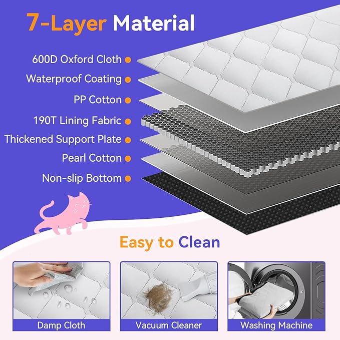 - STURDY MATERIAL AND NON-SLIP : Pawaboo backseat extender for dogs adopts premium material with 7 layers.advanced heat-pressing technology, 600D Oxford cloth, quilted cotton and 35D sponge, Effectively waterproof, anti-scratch, more sturdy and comfortable. Bottom non-slip dot rubber and seat anchors, use with adjustable straps to hold the dog seat cover securely in place, easing the dog's anxiety during long car trips.