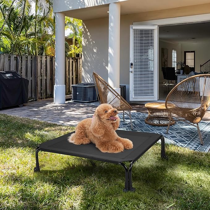 • Stay Cool & Comfy: Crafted with breathable Teslin mesh , this raised dog bed provides superior airflow to keep your pet cool and dry in the summer. And the cooling dog bed lifts your dog off the hard ground, mud or wet grass, alleviating joints pressure and keeping health.