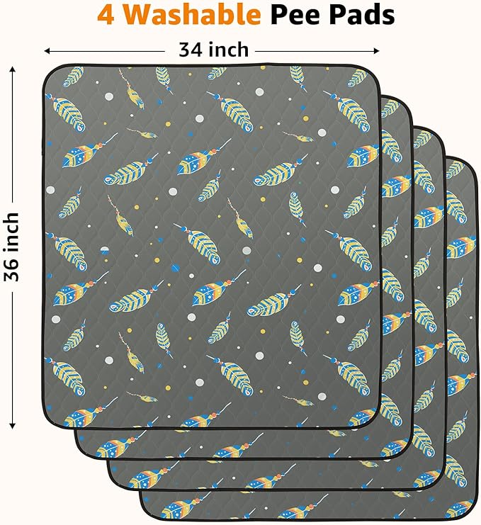 Washable Pee Pads for Dogs: 4 Pack Reusable Puppy Pads 34x36 Inch