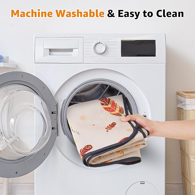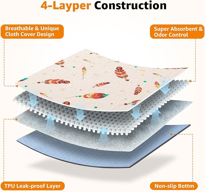 - STYLISH DOG PADS: Are you still upset about that ugly disposable puppy pee pad? Choose our beautiful feather-patterned reusable dog pee pad, it not only ensures reliable floor protection but also adds a touch of style to your home. They seamlessly blend with your interior decor, providing a comfy, safe spot for your furry friend’s activities or relaxation