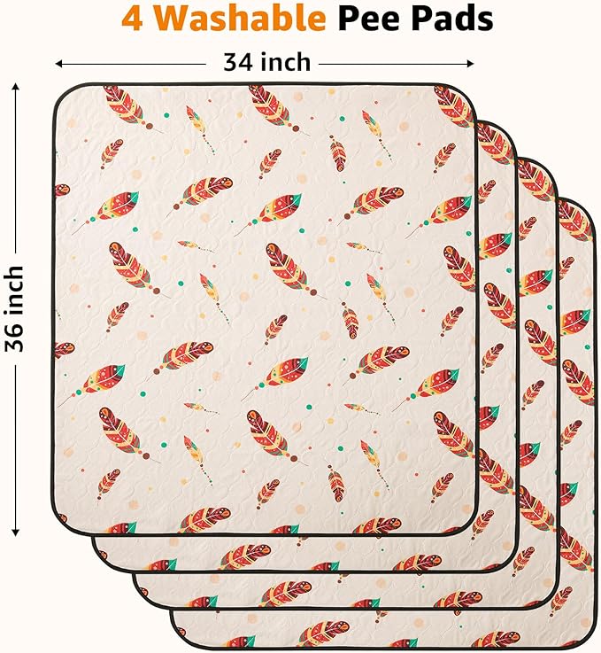 Washable Pee Pads for Dogs: 4 Pack Reusable Puppy Pads 34x36 Inch