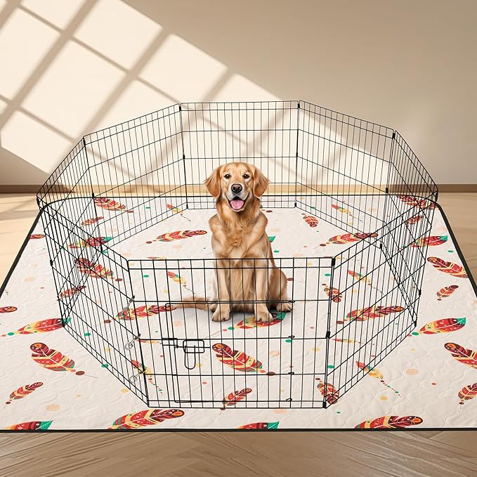 - STYLISH DOG PADS: Are you still upset about that ugly disposable puppy pee pad? Choose our beautiful feather-patterned reusable dog pee pad, it not only ensures reliable floor protection but also adds a touch of style to your home. They seamlessly blend with your interior decor, providing a comfy, safe spot for your furry friend’s activities or relaxation