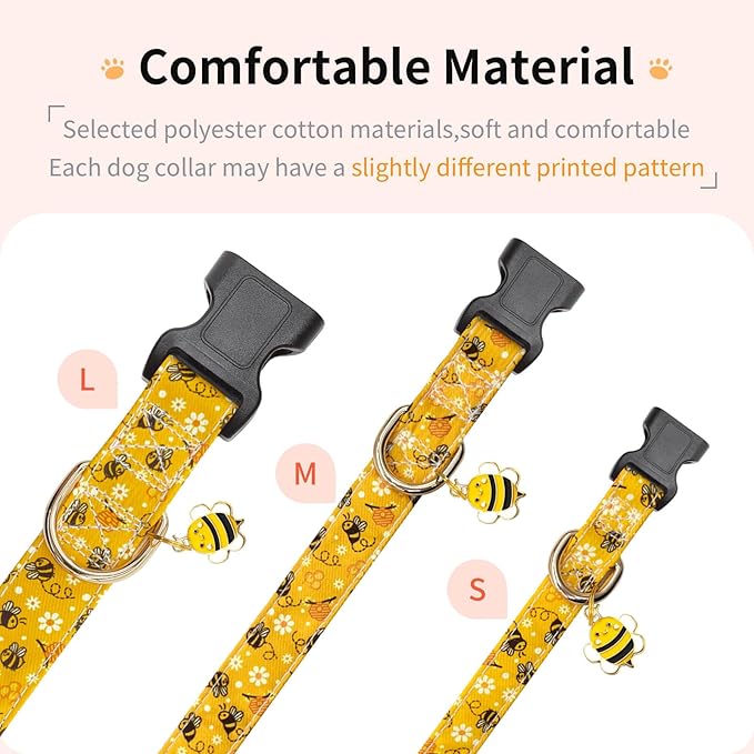 - 【Stylish Design】:The special personalized patterns are designed by our team.The puppy collar is printed with unique and clear bee pattern with cute pendant,will make your dogs look more fashionable and outstanding outdoors. A great choice to reward your lovely babies.