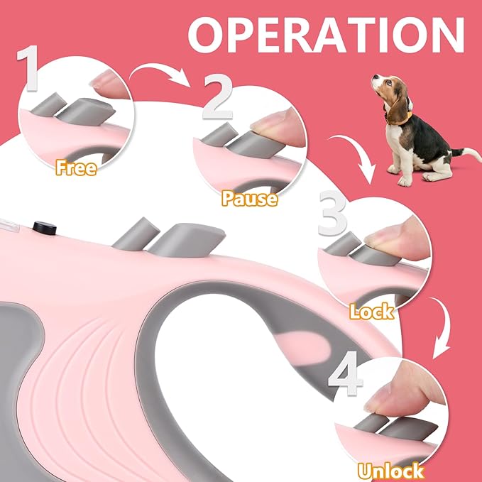 - User-friendly Control: Big button to lock, small button to unlock, very easy to release, adjustment or retract the leash as needed.