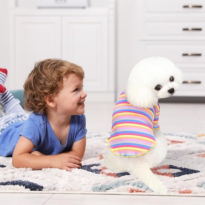 - ❤【Adorable Design】The Striped Dog Shirts with unique fashion rainbow stripes plus a ruffled edged design that adds a distinctive, it is eye-catching make your pets look more energetic and pretty. And you'll find your pets quickly when they're playing outside.
