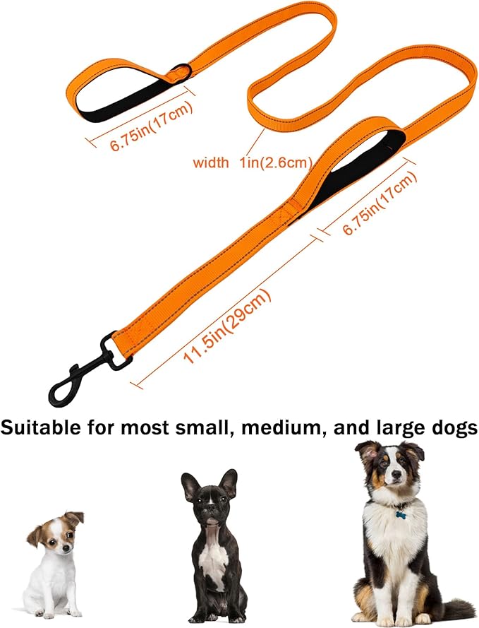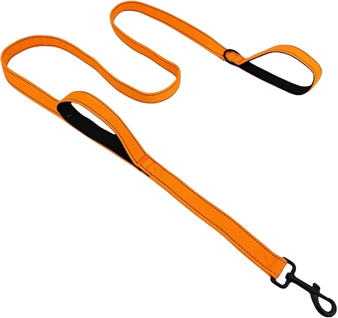 Solmoony 6FT Orange Strong Dog Leash with 2 Padded Handles 6FT)