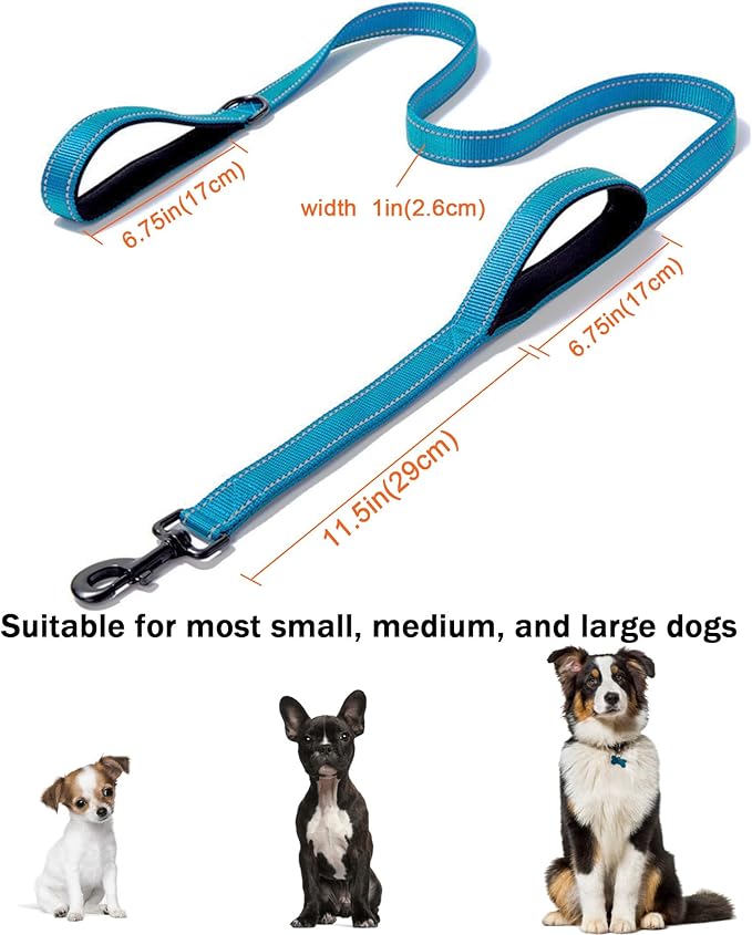 Solmoony 6FT Blue Strong Dog Leash with 2 Padded Handles 6FT)