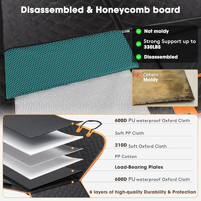 - 【6-Layer Durability & Protection】No more slouchy dog seat covers! Unlike the traditional truck dog seat cover being soft and easy to collapse, it can hold up a weight capacity of 350lbs, making it suitable for various dog sizes! The 58"W x 65"L backseat seat covers for cars uses the new upgraded fabric of 6-layer fabrics, this dog back seat cover is 100% waterproof to protect your seat from mud, liquid, and hair.