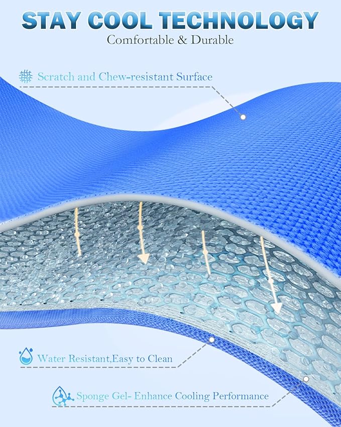 - DURABILITY: Featuring a dual-sided design, it offers versatility. The surface utilizes 100% nylon cooling fabric, resistant to chewing and waterproof. The quilted wave pattern design also ensures the mat remains flat and smooth.