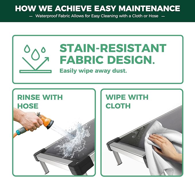 - Easy Maintenance: Made of waterproof fabric. Just hose down and wipe dry.