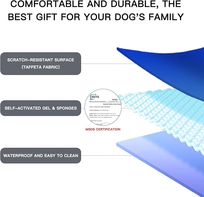 - 3x Faster Cooling: Dog cooling pad newly upgraded, increase 1.5 times the density, using 32 silk thickened taffeta composite PVC fabric. With SGS, MSDS, BSCI multiple testing certification, faster cooling, higher safety! A must-have gift for dogs to escape the summer heat!