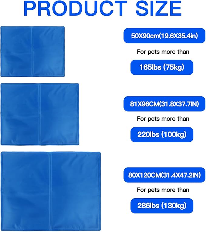 - Convenient for Everyday Use: 2 colors: blue and gray, size 81 x 96 cm (31.8 x 37.7 in). This cooling blanket for small, medium, large, extra large dog is pressure-resistant and leak-proof, with a high load-bearing capacity, suitable for cats, dogs and puppies. It is perfect for use indoors, outdoors in the shade. Do not place it in direct sunlight, as the UV rays of the sun can damage the cooling fabric and affect the performance of the cooling pad.
