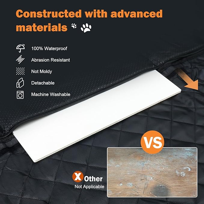 - 【Environmentally friendly】Odorless Materials: The rear seat dog seat cover, made from odorless materials, is friendly to both pets and children. In the confined space of a car, the absence of unpleasant odors is crucial for maintaining focus and safe driving, often overlooked by other dog products on the market. The thickened PP hollow board is more durable than other wooden bases. We have selected the highest-density PP hollow board, providing sufficient hardness support while being lightweight.