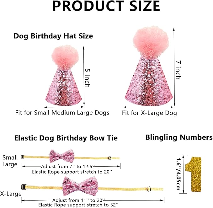 - 【Blingling Dog Birthday Hat with Number】: The Dog Birthday Hat is made of high-quality pressure-resistant fabric, very wear resistant, can be used many times. Small and Large Dog Birthday Hat’s height is 5 inches, fits for small, medium and large dogs pets, X-Large Dog Hats height is 7 inches, fits for large and extra large dogs pets. The Glitter 0-9 numbers are self-adhesive , just paste the number to the dog hats, you can celebrate your dog's birthday at different ages.