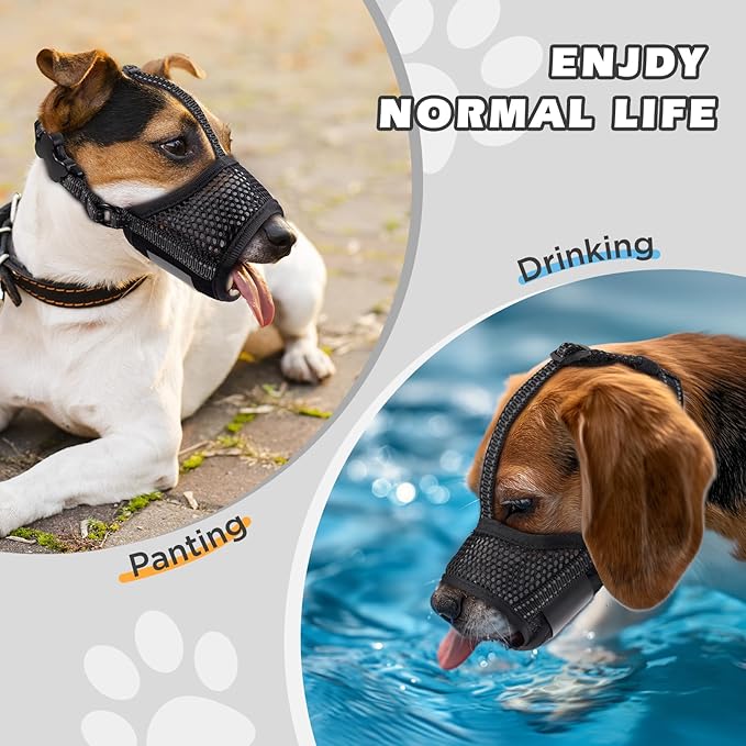 - Soft and Ultra-Breathable Dog Muzzle:Upgrade mesh dog muzzle made of soft, lightweight and odorless materials, is extremely comfortable for dogs to wear. We add a nylon strap adround dog's head to keep dog muzzle fall down.And also provide dogs with maximum ventilation and allows them to pant freely.