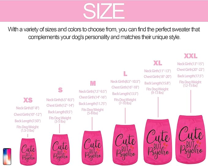 - Sizes: The shirt is available in different sizes to fit small to medium-sized dogs. Be sure to measure your dog's chest and neck girth before purchasing to ensure the best fit. The size chart can help guide you in choosing the right size for your pup.