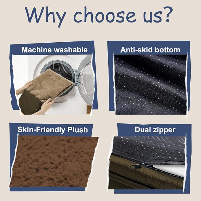 - 【Washable and Removable Dog Bed】 Washable dog bed can be easily removed, just unzip the washable dog bed and then you can remove the inner foam, the large washable dog bed cover supports machine washing; even if there's a spill, remove the cover and machine wash with tumble dry and low heat to keep a clean environment for your beloved dogs