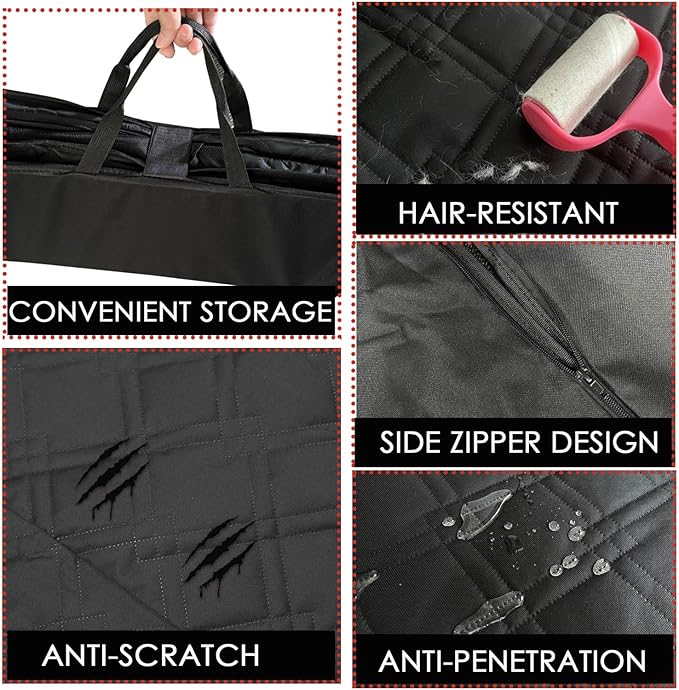 - [Premium Quality Materials] - Pet cover is made with heavy-duty waterproof oxford fabric, with durably stitched seams and padded with thick materials for comfort. Keep your car dog travel bed from ruin, strong enough to ensures long-lasting use. Infused with Color-Fast layers preventing color bleeding, Free of AZO dyes, and can withstand extreme temperatures without damaging your vehicle