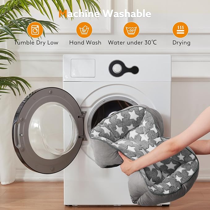 - SOFT & SAFE MATERIALS This small dog puppy bed boasts a star pattern design inside, balancing both practicality and aesthetics. Crafted with soft, stain-resistant suede exterior and cozy lamb fleece interior, it keeps your pet warm and comfortable in winter it filled with eco-friendly PP fiber, it offers a breathable and cozy sleeping space.