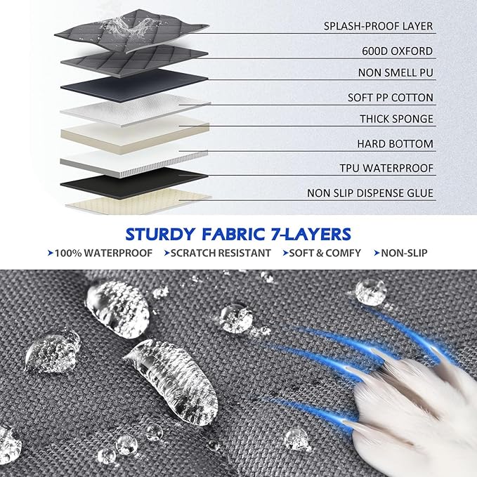 - 【Hard Bottom, Durable Material】 This back seat extender for dogs is made of stronger but softer material. It is made of PU layer, which is flavorless and also waterproof. The surface is high-density firm Oxford cloth, more durable and easy to clean. Pearl cotton is sandwiched in the center, more soft. Thickened hollow board is more solid and not easy to bend. Encrypted and thickened webbing and lock buckle are more advanced and durable.