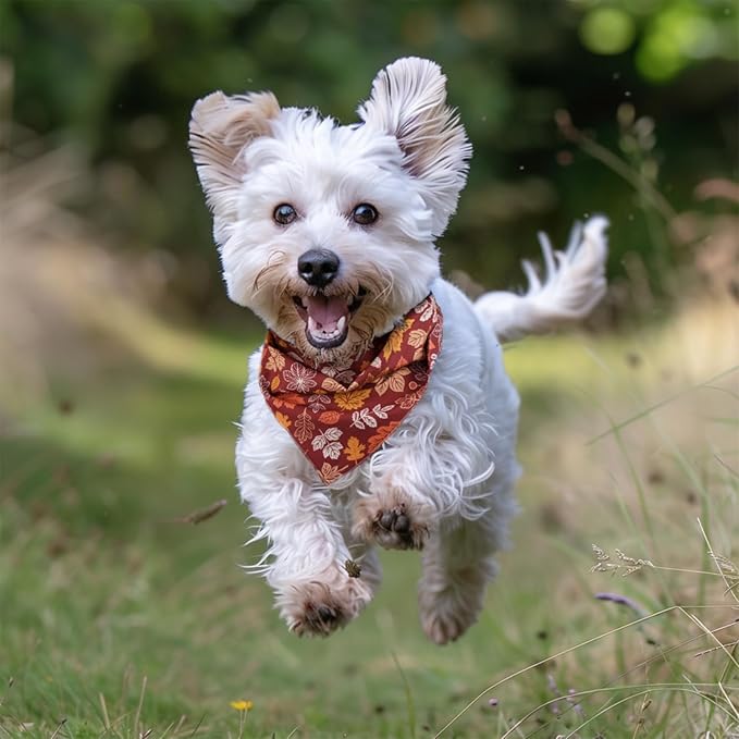Fall Dog Bandana 2 Pack Thanksgiving Dog Bandana Leaf Pet Scarf Reversible Fall Triangle Bibs Soft Cotton Boy Girl Dog Bandanas for Small, Medium, Large Dogs (Small)