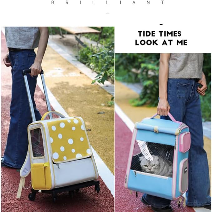 - Double-layer Wheels: The rolling cat carrier features 360掳 smooth and quiet double-layered, wear-resistant wheels with a 2.1-inch diameter. It ensures a bump-free journey on various road surfaces for your pet.
