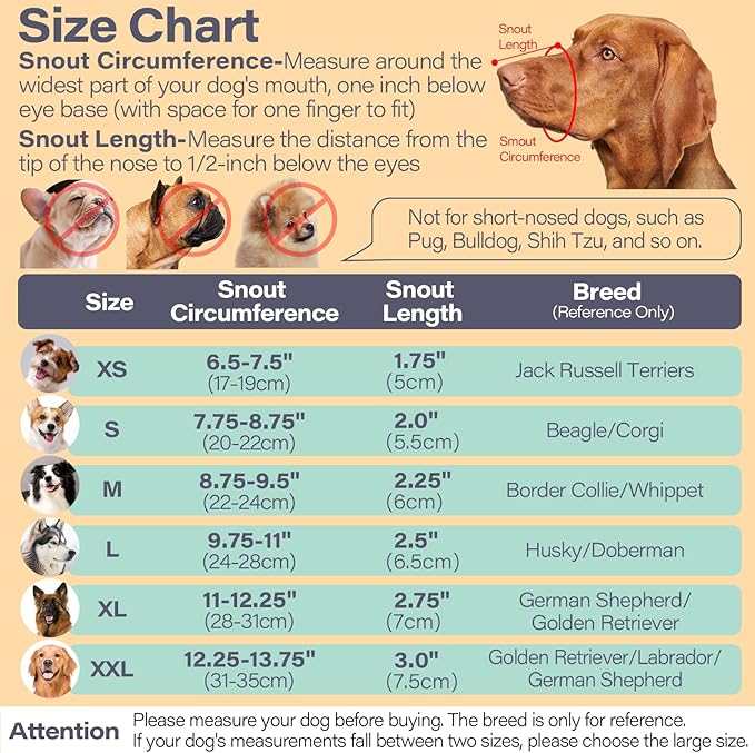 - Dog Muzzle for Large Dogs-Size XXL is suitable for snout circumference between 12.25 -13.75", and snout length longer than 3". The dog muzzle for large dogs anti biting is suitable for Rottweiler. Please measure twice before buying.