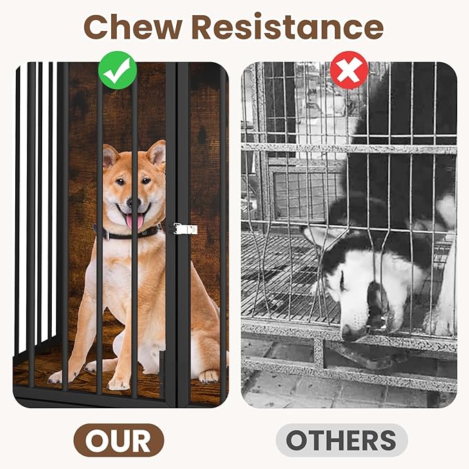 - Safe and Comfortable - The 0.32-inch iron pipe used in this crate is stronger and less likely to cause damage to pet's mouth. No sharp edges or burrs inside, no pungent smells. The ventilation openings surrounding the crate allow for better visibility and ample fresh air for pets.