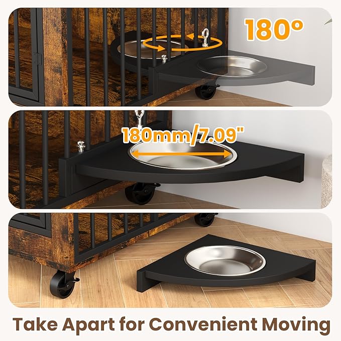 - Kennel with 4 Wheels - Featuring lockable wheels, you can easily roll the crate aside for vacuuming, mopping, or cleaning up pet hair and spills, ensuring a cleaner living environment. This dog kennel furniture includes installation tools and an instruction manual for easy assembly.