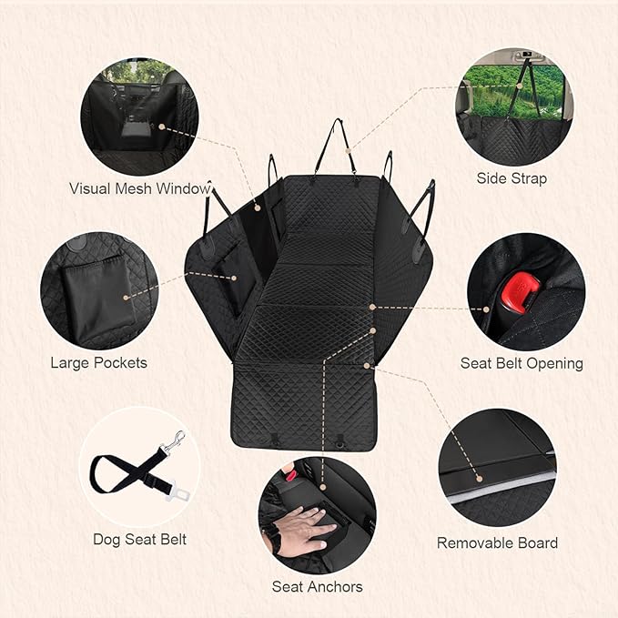 - 【Visible Mesh Design for Pet Visibility】The visible mesh of hard bottom dog seat cover is made of durable materials, soft and comfortable, yet resistant to tearing and damage. Your pet can breathe freely and enjoy the air conditioning while ensuring your driving safety