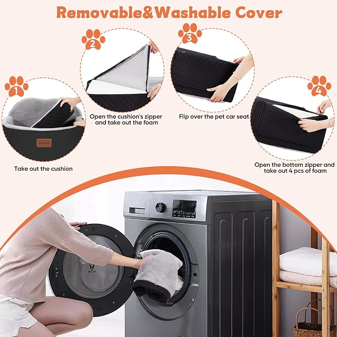 - Easy Installation & Detachable: The adjustable buckle design of the dog car seat for medium sized dogs offers secure and easy installation. Simply fasten the car belt through the holes on the back of the dog booster seat, then fix the strap on the headrest and adjust the length of the straps to fit your car. The dog seat is fully detachable, allowing you to open the bottom zipper and remove the sponge. Then you can wash the cover to keep it clean