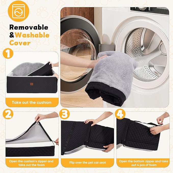 - Comfortable & Sturdy Pet Cat Seat: The car seat for dogs is crafted with high-density 26D foam, soft plush cover, adjustable strap and safety belt. The thickened sponge cushion provides optical support for the pet and effectively reduces the impact of road bumps during the car rides. The sturdy construction features high-density sponge, premium fabric, durable strap and heavy-duty hooks, ensuring your pet’s comfort and the booster seat's durability.