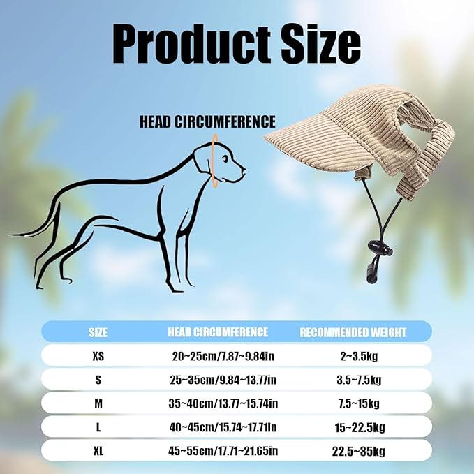 • 【Size】The outdoor hat has 5 sizes(XS/S/M/L/XL) to choose from, suitable for most types of cats and dogs, please choose according to the measured size data. The pet outdoor sports hat is designed with 2 ear holes at the top, which can let your pets show their lovely ears.