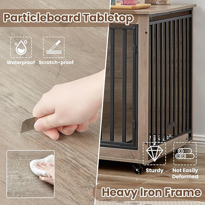 - Kennel with 4 Wheels - Equipped with lockable wheels, this crate can be easily moved aside for vacuuming, mopping, or cleaning up pet hair and spills, ensuring a cleaner living space. The dog kennel furniture comes with installation tools and an instruction manual for easy assembly.