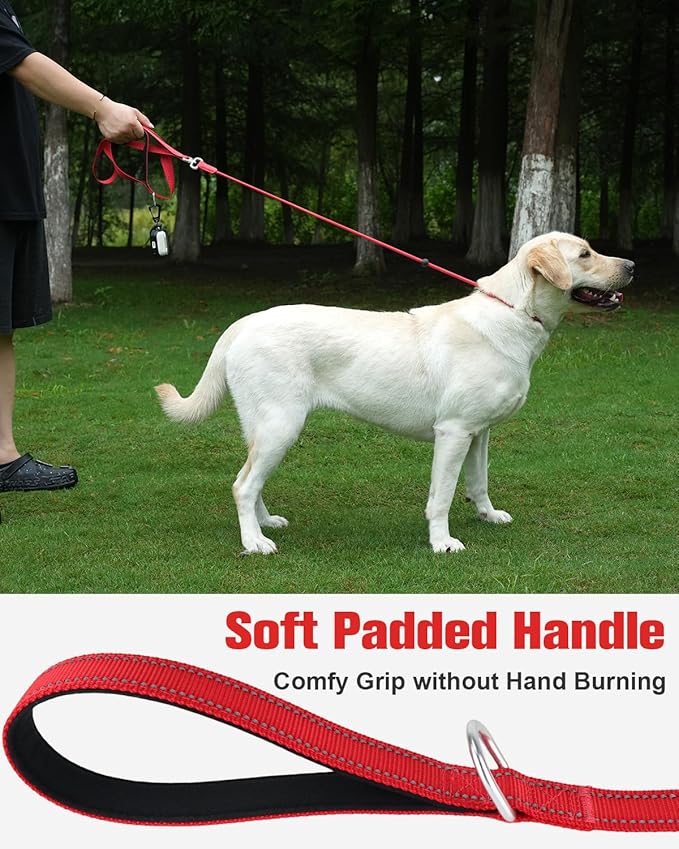 Aiyuda Tangle-Free Slip Lead for Dogs with Padded Traffic Handle 6ft Dog 40 LBS,Red/Black