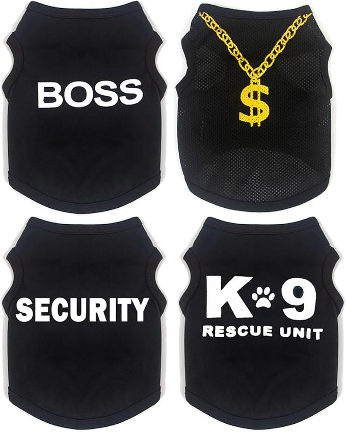 4 Pack Chihuahua Clothes Dog Clothes for Small Dog Black Puppy Clothes Soft K9 Boss Security Pattern Small Dog Shirt Summer Autumn Pet Clothing (X-Small)