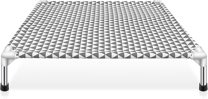 - [Soft and Luxurious Comfort]Our elevated pet cot features a soft, breathable cotton fabric that's gentle on your pet's skin and offers better moisture absorption and heat resistance than traditional mesh. The raised design ensures good air circulation, keeping your dog cool, especially those with joint issues. Keep your furry friend cool and comfortable.