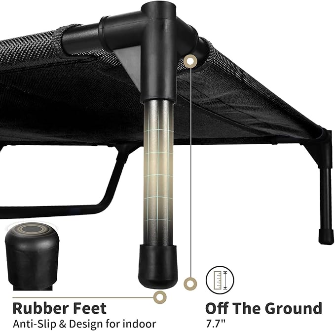 - Easy to clean: The raised dog bed is easy to clean and maintain, as the elevated dog bed mesh fabric is removable and machine washable. This elevated dog bed ensures that your pet always has a clean and hygienic resting place.