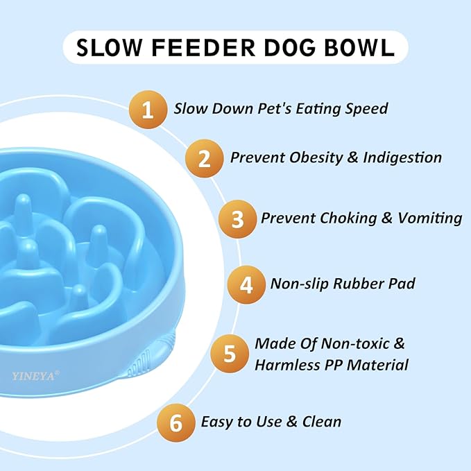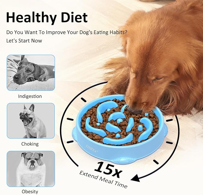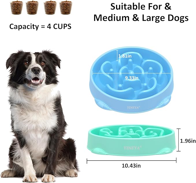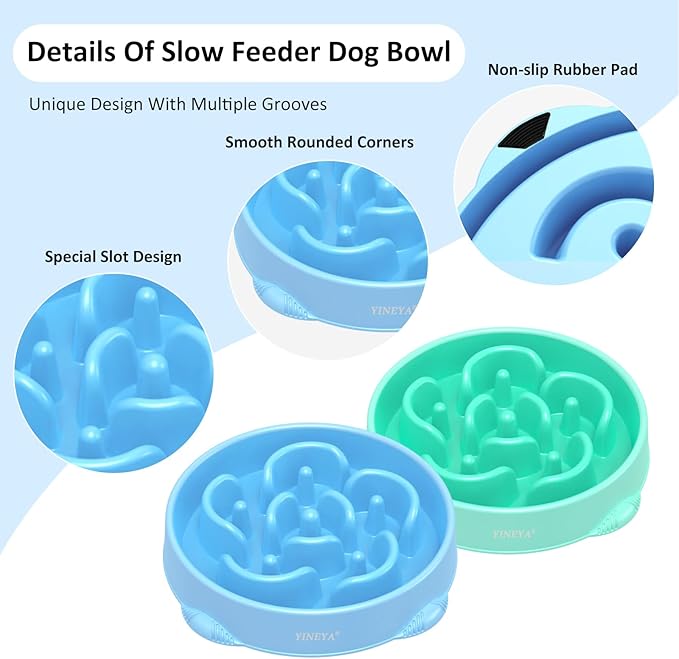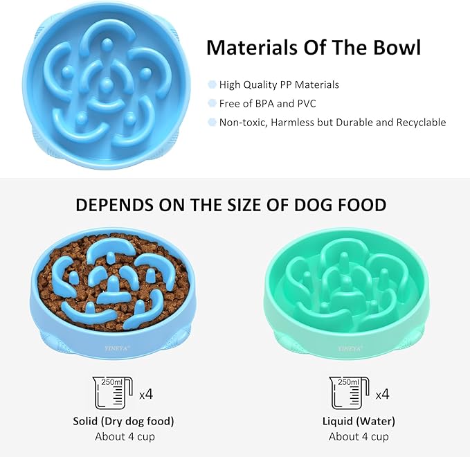 - Slow Down Dog'S Eating: Are you still worried that your dogs wolf their food down causing bloat, choking and other health issues? YINEYA large slow feeder dog bowls large breed can replace the regular dog bowls large sized dog to prevent the dog from eating too fast. With unique maze design, our small dog slow feeder bowl small breed and slow feeder cat bowl can allow dogs to chew food more slowly and reduce digestive problems, enhancing oral sensation and the process of enjoying food