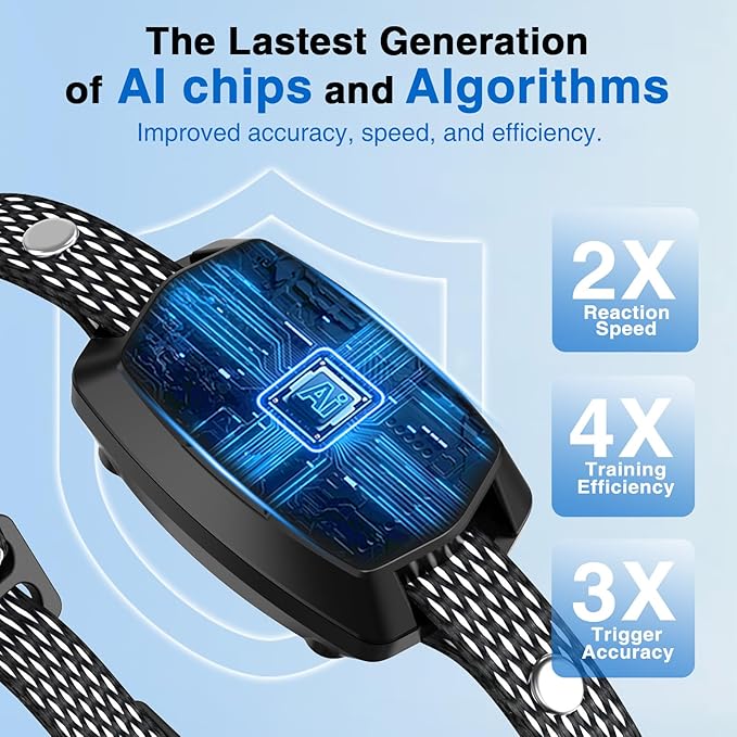 - 【2024 Anti-False Dual-Trigger Technology with AI Chip】 Equipped with advanced gyroscopic sensors and a 2024 AI chip, this anti bark collar only triggers corrective actions when it detects both your dog's motion and barking. This minimizes false triggers and enhances training precision, making it one of the most effective bark collars for dogs.