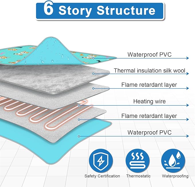 - Upgraded Configuration: Puppy heating pad 22x18 inches for litter boxes (for newborn kittens and puppies, adult cats) + Smart thermostat with automatic shut-off. Reinforced interface + wire rope for more safety.